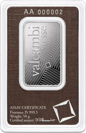 Platinový zliatok Valcambi 50 g