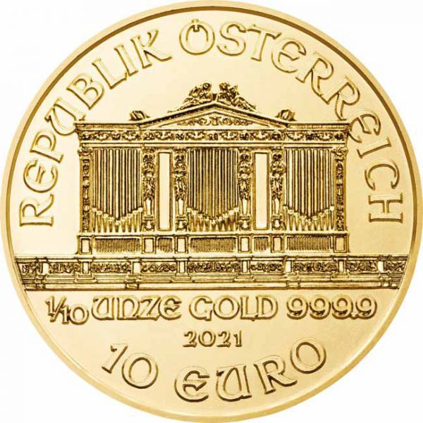 Zlatá minca Viedenskí filharmonici - rôzne roky, 1/10 oz