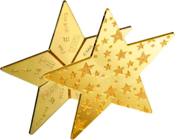 Hvězda CombiBar ? se skládá z pěti spojených 1 g jemných zlatých kousků, které lze oddělit jako klasické stolní tyče. Ušlechtilá hvězda je zabalena v krásné knížečce s certifikátem.